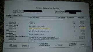 Image copyright Imgur "Tuve que pagar US$39,35 para cargar en brazos a mi bebé después de que nació".