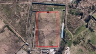 Image copyright Google Maps / La NaciónTodos sabían que no era normal. Pero para los directivos, jugadores, rivales, afición y árbitros que desde hace 30 años han participado o presenciado partidos en el estadio "Juan Antonio Arias", ubicado en Bermejo, poco les había importado lo que hacía de esa cancha un caso único en el fútbol argentino.