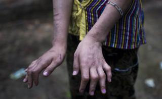 The other girl, now 17, has burnt, twisted fingers – the consequence, she says, of them being broken deliberately by her captors as punishment.