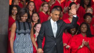 Before officially opening the museum, Mr Obama rang a bell belonging to one of America"s oldest black churches.
