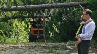 The high winds have left a trail of destruction in the south-east of the US. They are the tail-end of the first hurricane to hit Florida in a decade.